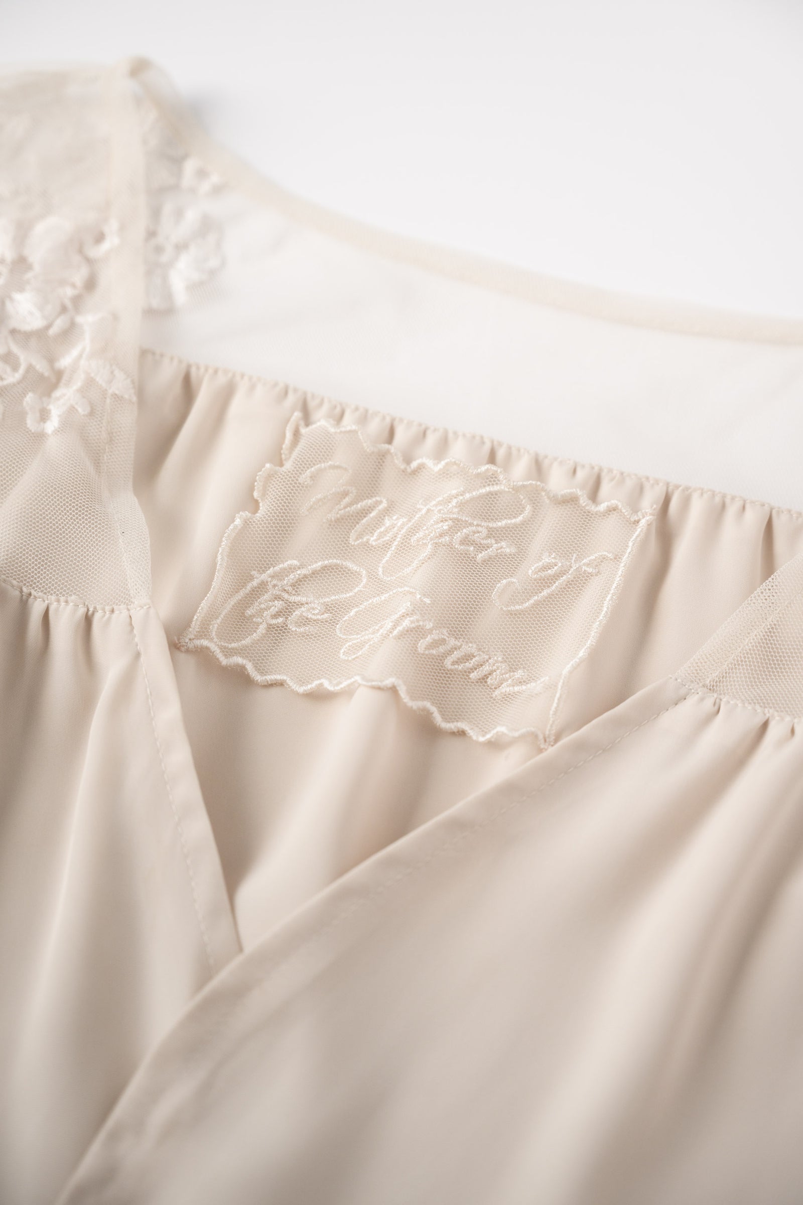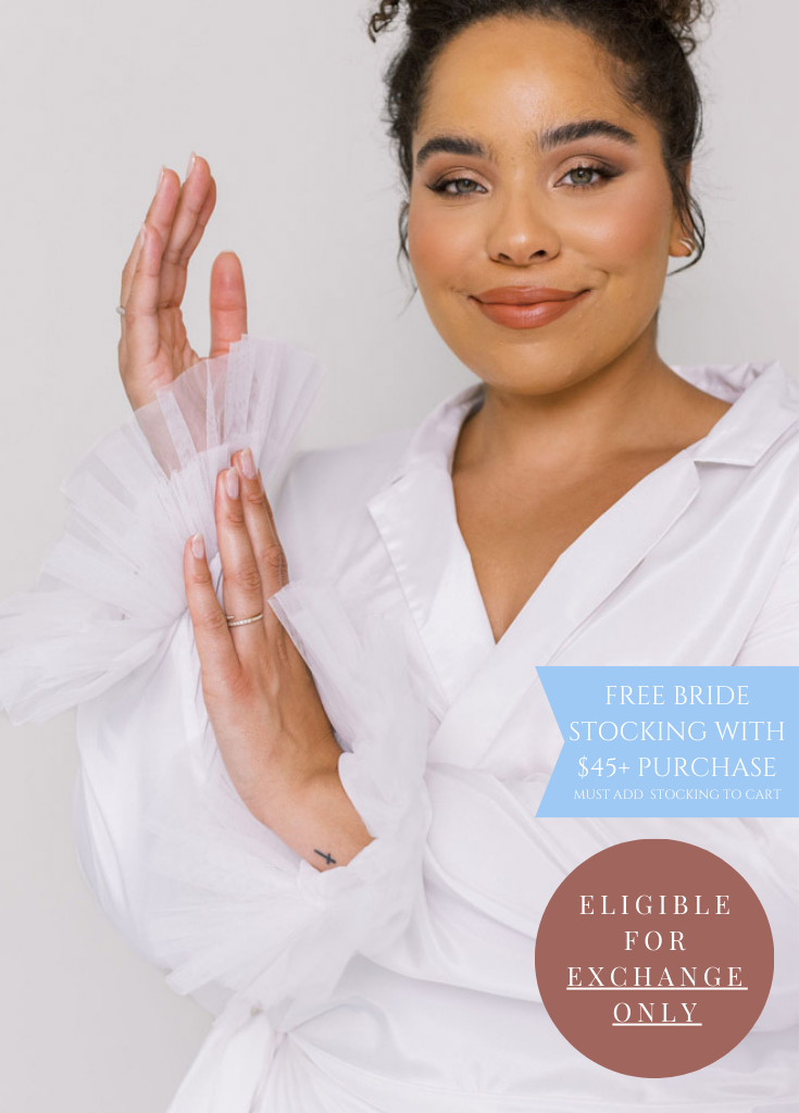 Typically our brides wear nude panties and nude STRAPLESS bra or our Katelyn Pajama Cami.